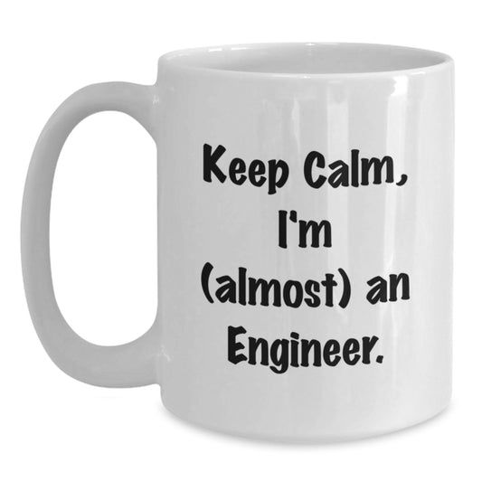 Funny Engineer Mug, Keep Calm I'm Almost An Engineer Gifts for Graduation, White Coffee Mug for Men Women Friends Family, Gifts from Coworkers to Engineer