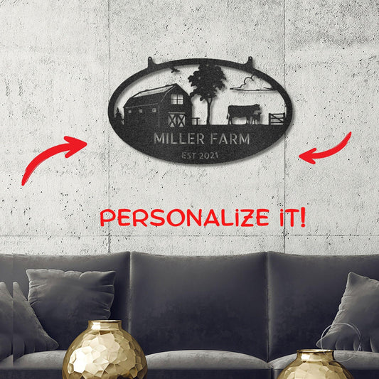 Farm Scene Custom Name Steel Wall Sign Metal Art