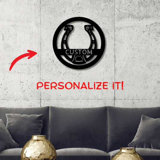 Horseshoe Custom Name and Initial Metal Art Wall Sign