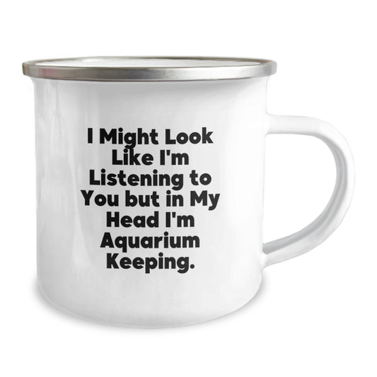 Funny Aquarium Keeping Gifts for Men from Friends - 'I Might Look Like I'm Listening To You But In My Head I'm Aquarium Keeping' Camping Mug for Christmas