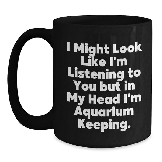 Funny Aquarium Keeping Christmas Unique Gifts for Friends and Family, Black Coffee Mug, 'I Might Look Like I'm Listening To You But In My Head I'm Aquarium Keeping.'