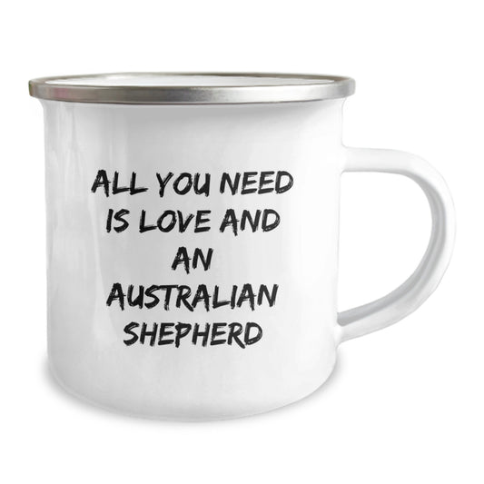 Funny Australian Shepherd Dog Camping Mug Gifts from Friends to Birthday Australian Shepherd Dog Lovers, 'All You Need Is Love And An Australian Shepherd'