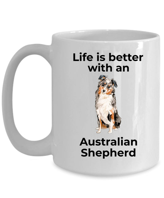 Australian Shepherd Dog two-tone color and white ceramic coffee mug - Life is Better with an Australian Shepherd