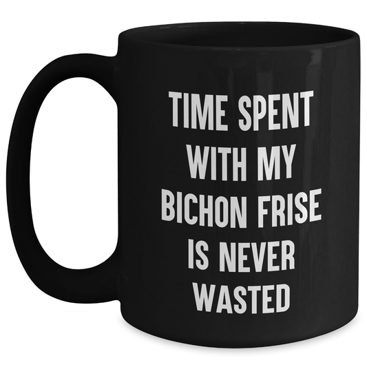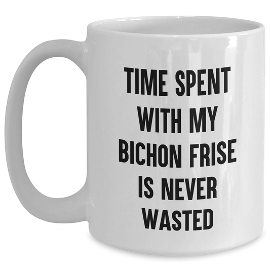 Funny Bichon Frise Dog Gifts from Men to Dad on Father's Day - White Coffee Mug, 'Time Spent With My Bichon Frise Is Never Wasted'