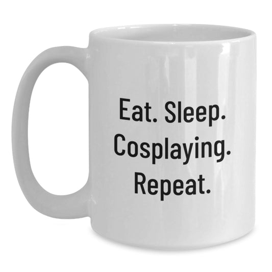 Cosplaying Gifts from Friends, Fun Two Tone Coffee Mugs for Cosplaying Enthusiasts, Eat. Sleep. Cosplaying. Repeat. Graduation Unique Gifts