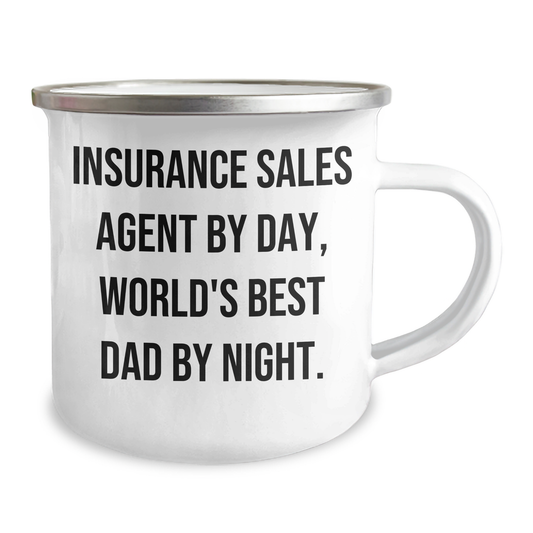Insurance Sales Agent Gifts from Men - Funny Camping Mug for World's Best Dad - 'Insurance Sales Agent By Day, World's Best Dad By Night.'