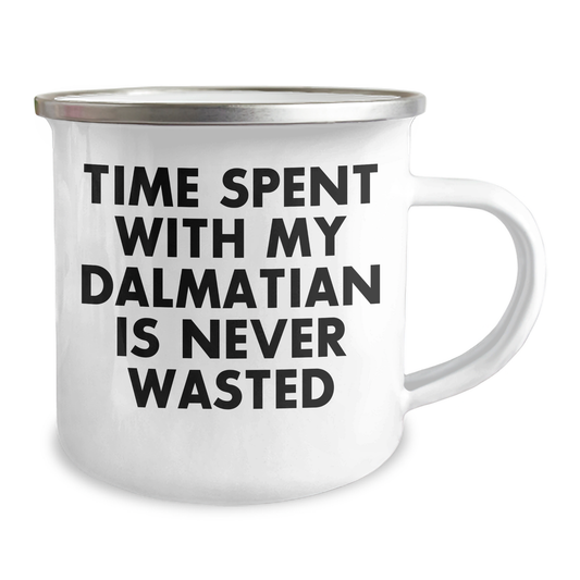 Dalmatian Dog Lovers Gifts from Friends and Family, Time Spent with My Dalmatian is Never Wasted, Funny Camping Mug for Dad on Father's Day