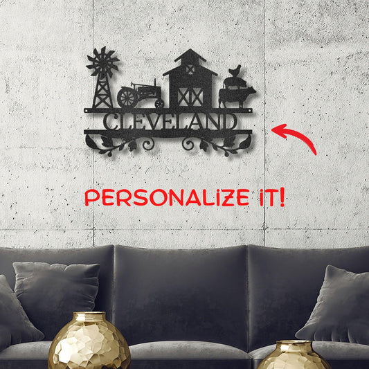Custom Farm Name Metal Sign – Personalized Barn & Tractor Wall Art – Laser Cut from 16-Gauge Steel – 5 Sizes & Finishes – Made in the USA