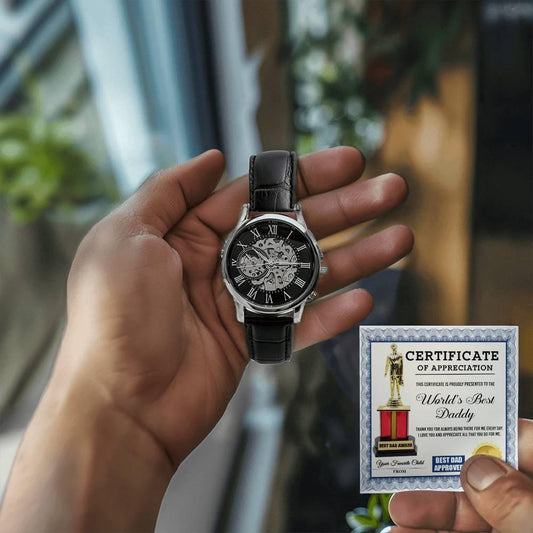 Certificate of The World's Best Daddy Men's Openwork Watch with Gift Box