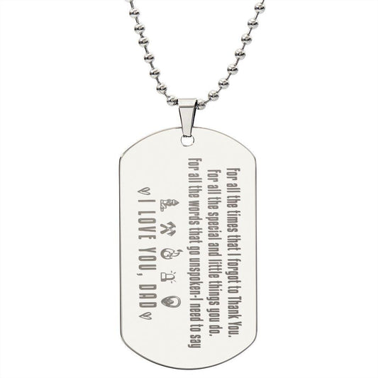 To My Firefighter Dad Engraved Dog Tag Necklace