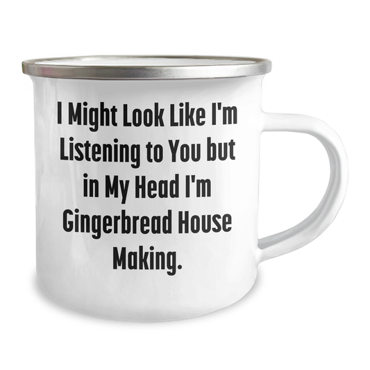 Funny Gingerbread House Making Gifts for Dad - 'I Might Look Like I'm Listening...' 12 oz Camping Mug, Gifts from Men to Family, Perfect for Father's Day