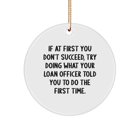 Funny Loan Officer Gifts - Oval Ornament with 'If At First You Don't Succeed' Quote, Christmas Unique Gifts for Loan Officer