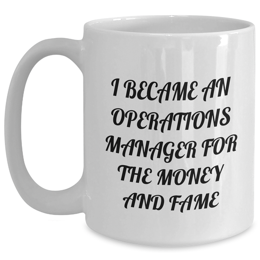Funny Operations Manager Gifts, 'I Became An Operations Manager For The Money And Fame' White Coffee Mug for Graduation, Gifts from Men to Operations Manager