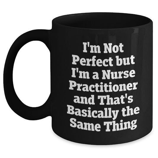 Nurse Practitioner Gifts, Funny Quote Mug, Gifts from Women for Nurse Practitioner, Mother's Day Unique Gifts, Black Coffee Mug, Not Perfect But Practitioner
