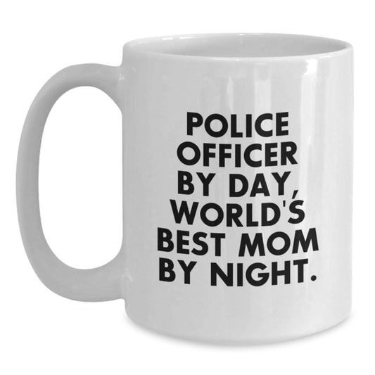Police Officer Mom Graduation Gifts from Friends, White Coffee Mug - 'Police Officer By Day, World's Best Mom By Night.' - Unique Mugs for Men and Women