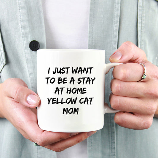 Yellow Cat Lover Mug – Features the Quote “I Just Want to Be a Stay at Home Yellow Cat Mom” – White Ceramic Coffee Cup
