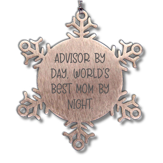 Funny Advisor Gifts by Day, World's Best Mom by Night Snowflake Ornament, Christmas Unique Gifts from Friends, Family, Coworkers, and Men to Women, Men, and Family