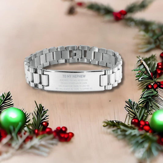 Nephew Gifts, To My Nephew Remember, you will never lose. You will either WIN or LEARN, Keepsake Stainless Steel Bracelet For Nephew Engraved, Birthday Christmas Gifts Ideas For Nephew X-mas Gifts