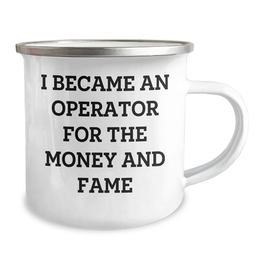Operator Camping Mug Gifts from Men to Operator for Mother's Day - Funny Quote I Became An Operator For The Money And Fame, 12 oz Stainless Steel Enamel Finish, Inspirational