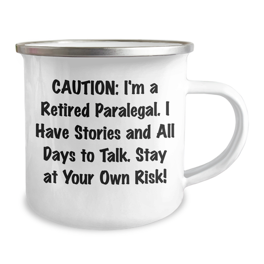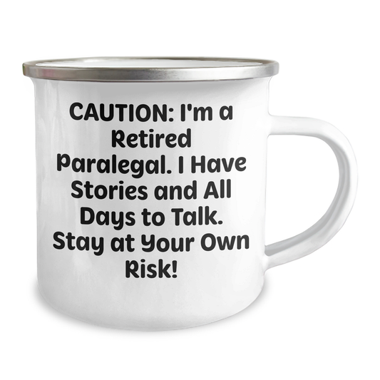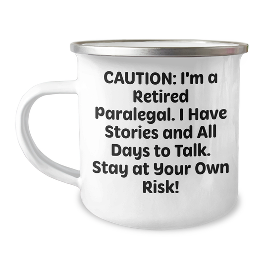 Funny Paralegal Gifts for Mother's Day - 'Caution: I'm A Retired Paralegal...' Camping Mug for Women by Friends from Home - 12 oz Stainless Steel with Enamel Finish