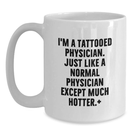 Funny Physician Gifts - I'm A Tattooed Physician. Just Like A Normal Physician Except Much Hotter.+, White Coffee Mugs for Birthday, Gifts from Friends, Gifts for Physician