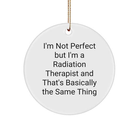 Funny Radiation Therapist Gifts from Friends for Christmas - 'I'm Not Perfect But I'm A Radiation Therapist And That's Basically The Same Thing' Circle Ornament