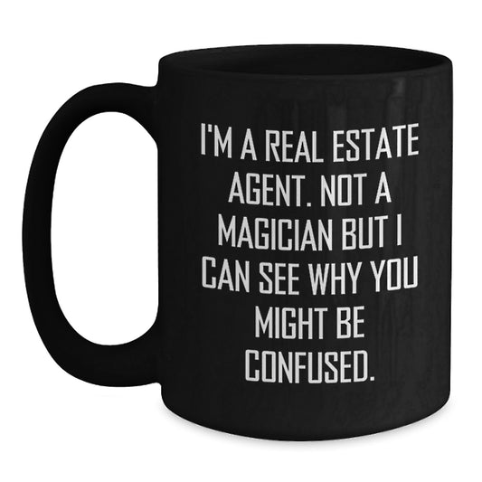 Funny Real Estate Agent Gifts from Men to Women Coworkers, I'm A Real Estate Agent. Not A Magician But I Can See Why You Might Be Confused. Two Tone Coffee Mug Christmas Unique Gifts