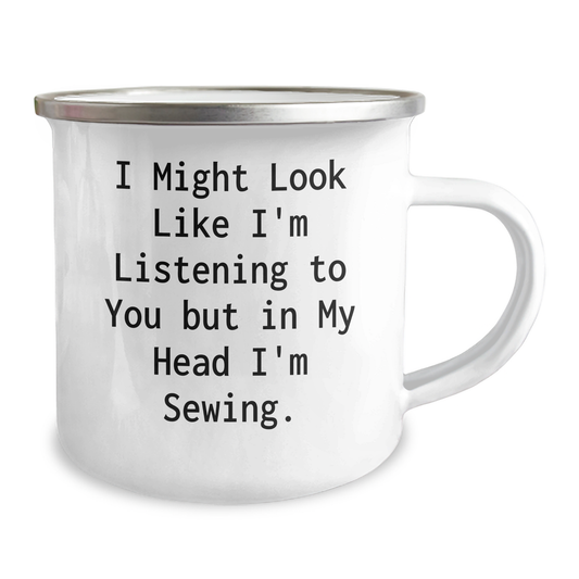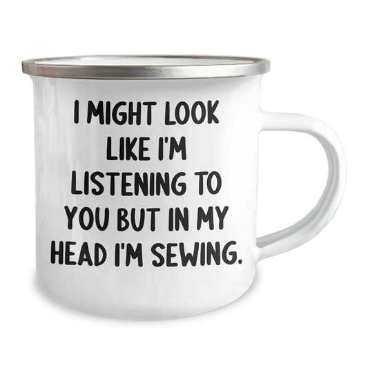 Sewing Humor Gifts from Friends for Sewing Men - Funny Camping Mug, I Might Look Like I'm Listening To You But In My Head I'm Sewing.