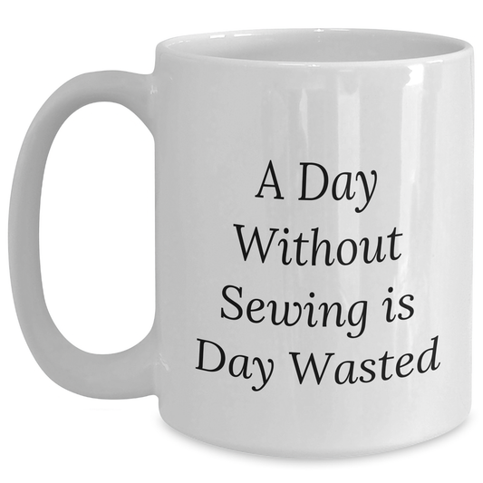 Sewing Enthusiasts Delight, Funny White Coffee Mug for Men, Gifts from Friends or Family on Father's Day, 'A Day Without Sewing Is Day Wasted' Quote