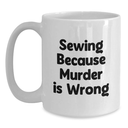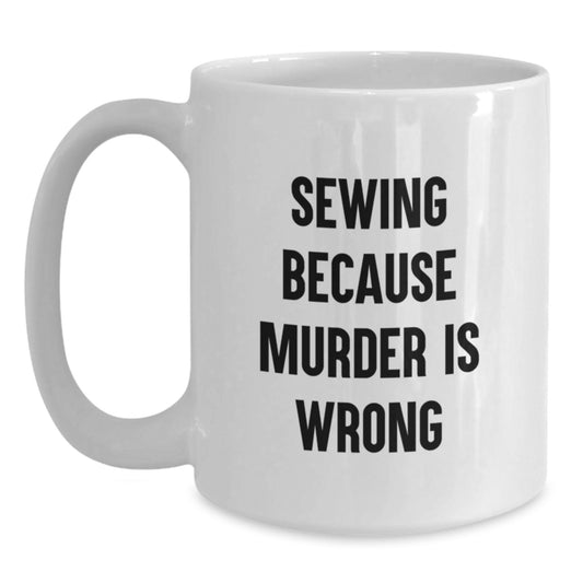 Sewing Gifts for Men, Women, or Friends - Funny Camping Mug 'Sewing Because Murder Is Wrong' for Graduation