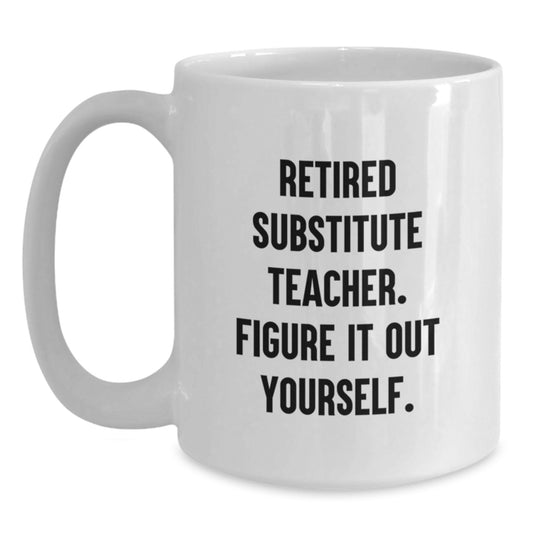 Funny Substitute Teacher Gifts for Men White Coffee Mug 'Retired Figure It Out Yourself'