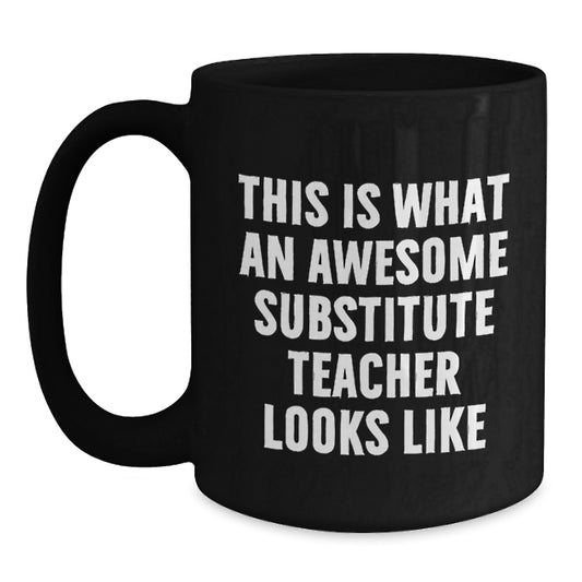 Funny Substitute Teacher Gifts from Friends, Coworkers, or Family - 'This Is What An Awesome Substitute Teacher Looks Like' Inspirational Black Coffee Mug for Graduation