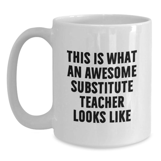 Funny Substitute Teacher Gifts from Friends - White Coffee Mug, This Is What An Awesome Substitute Teacher Looks Like, Graduation Unique Gifts for Substitute Teacher