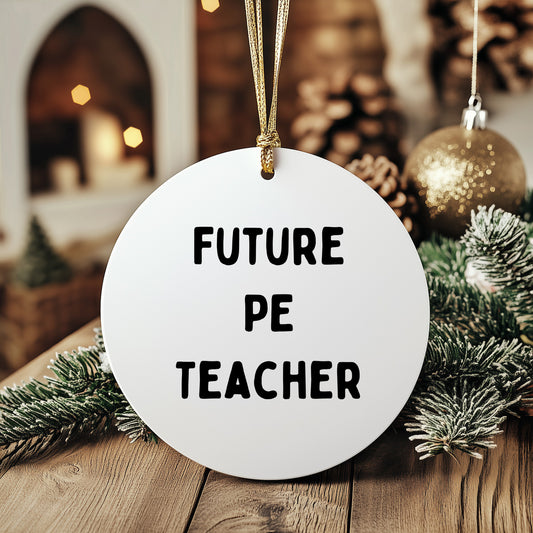 Funny Inspirational PE Teacher Circle Christmas Ornament, 'Future PE Teacher' Gifts