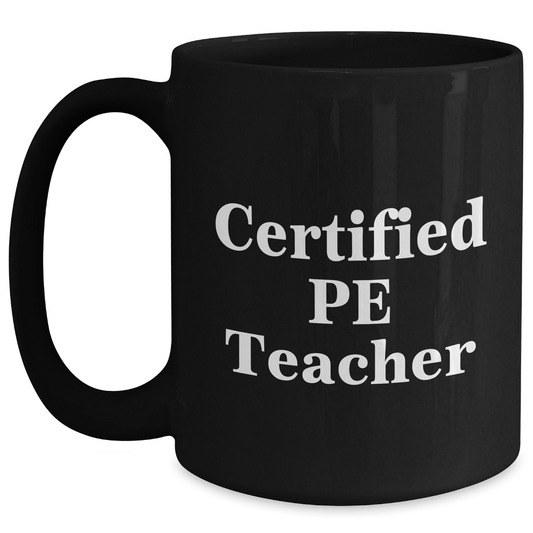 Funny PE Teacher Gifts from Friends for Father's Day Unique Black Coffee Mugs, 'Certified PE Teacher' Quote, Microwave and Dishwasher Safe