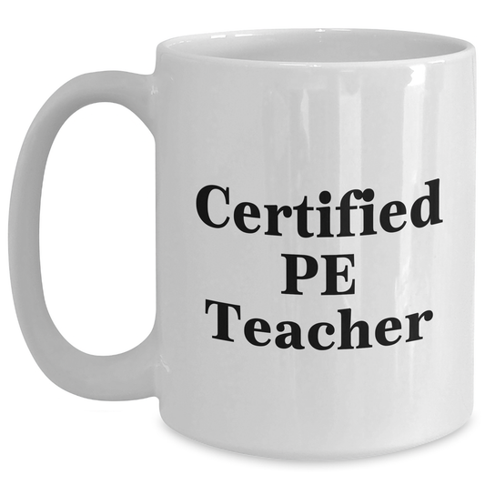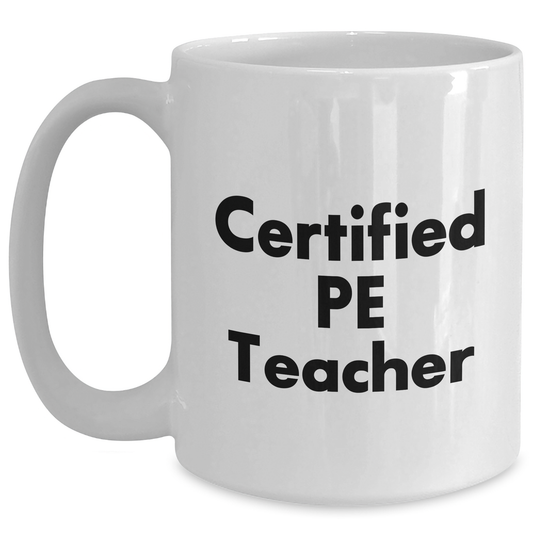 Funny PE Teacher Gifts for Men or Women, Certified Pe Teacher Quote White Coffee Mug, Perfect for Father's Day
