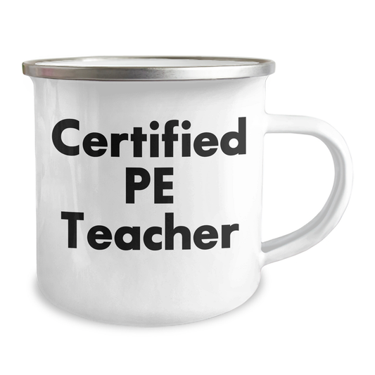 Funny PE Teacher Gifts from Friends for Father's Day Unique Camping Mug, Gifts for PE Teacher, Enamel Finish, 12 oz Stainless Steel