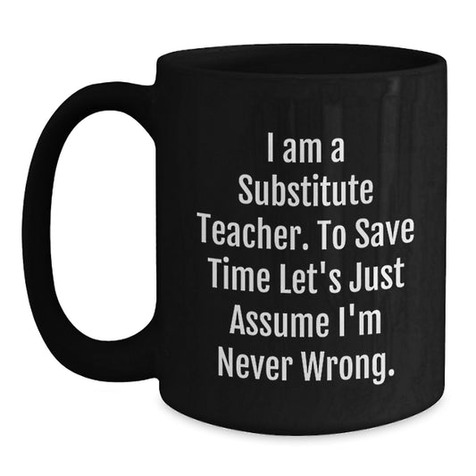 Funny Substitute Teacher White Coffee Mug, Ideal Gifts from Friends for Christmas Unique Gifts, Sayings 'I Am A Substitute Teacher. To Save Time Let's Just Assume I'm Never Wrong.'