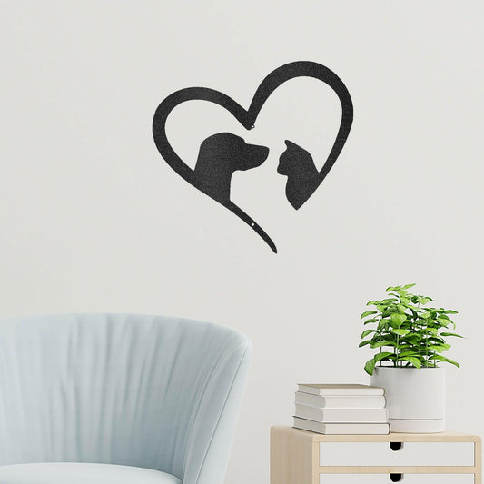 Pet Love Dog and Cat Heart Indoor Outdoor Steel Sign