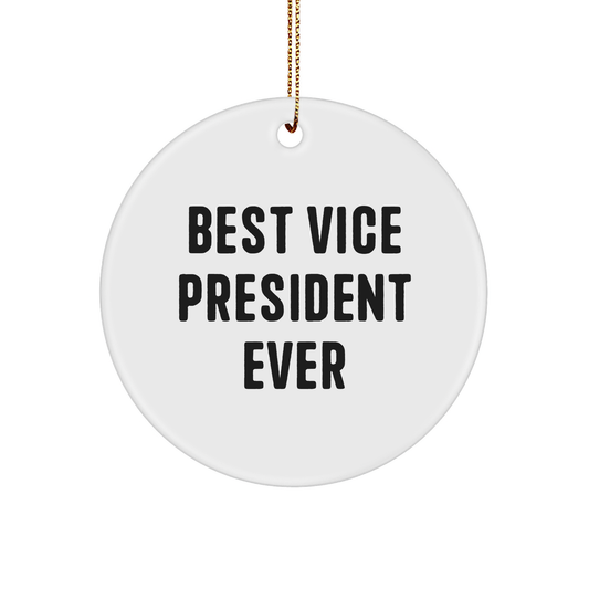 Gifts from Friends for Best Vice President Ever Circle Ornament, Funny Quote, White, 2.75" Tall, Christmas