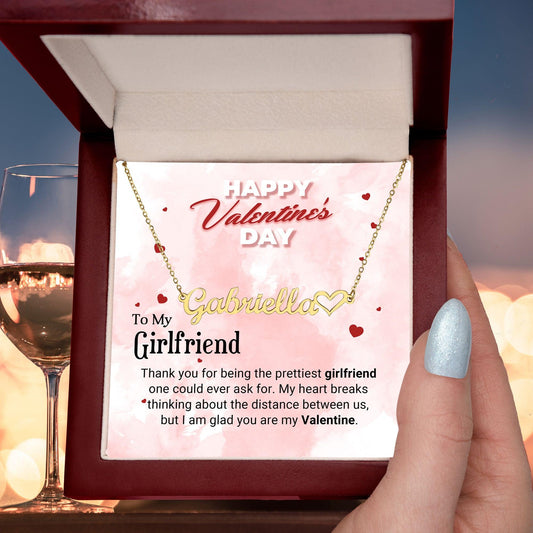 To the Prettiest Girlfriend I am Glad You Are My Valentine Personalized Heart Name Necklace