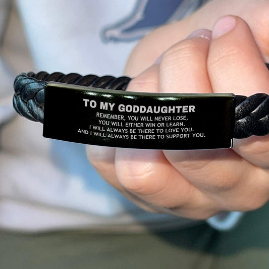 Goddaughter Gifts, To My Goddaughter Remember, you will never lose. You will either WIN or LEARN, Keepsake Braided Leather Bracelet For Goddaughter Engraved, Birthday Christmas Gifts Ideas For Goddaughter X-mas Gifts