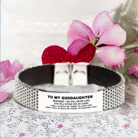 Goddaughter Gifts, To My Goddaughter Remember, you will never lose. You will either WIN or LEARN, Keepsake Stainless Steel Bracelet For Goddaughter Engraved, Birthday Christmas Gifts Ideas For Goddaughter X-mas Gifts