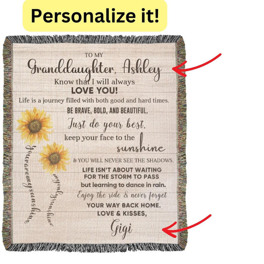 Granddaughter Keepsake Gift - Know that I Will Always Love You - Personalized Heirloom Woven Cotton Blanket