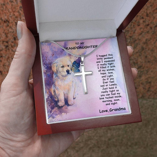 Granddaughter Custom Engraved Cross Pendant Necklace Puppy Message Card