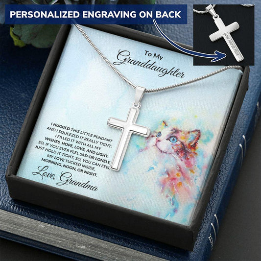 Granddaughter Gift Hugs Love Grandma Personalized Cross Pendant