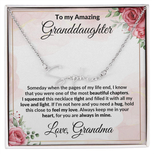 To My Amazing Granddaughter Personalized Script Name Necklace with Message Card