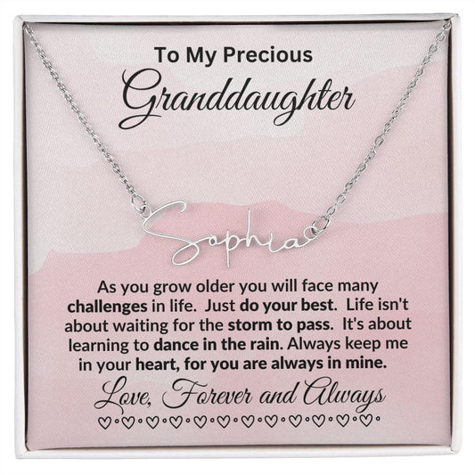 To My Precious Granddaughter Dance in the Rain Personalized Script Name Necklace