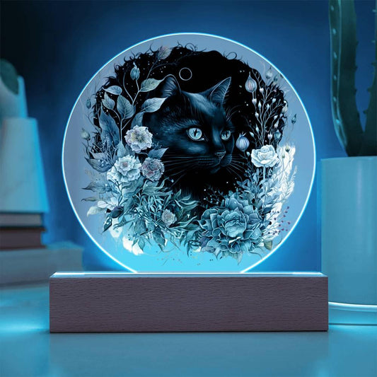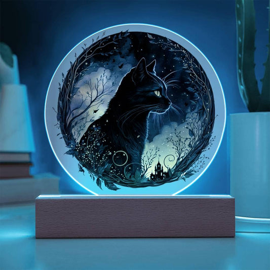 Moonlit Mystery: Black Cat Acrylic Plaque Showcase