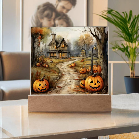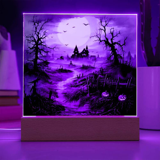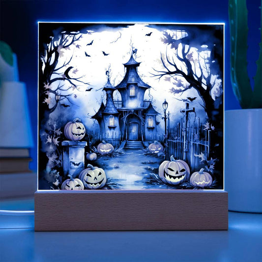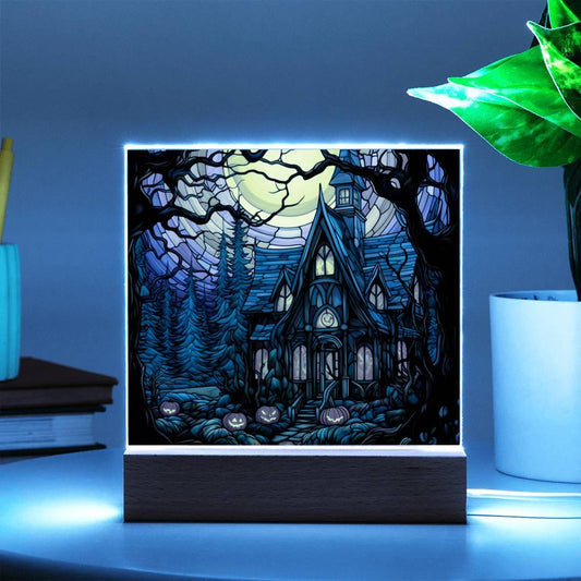 Spooky Halloween Mansion Acrylic Square Plaque with LED Lighted Wooden BaseRegular price From $69.95 USDRegular priceUnit price / per$139.95 USDSale price From $69.95 USDSale
